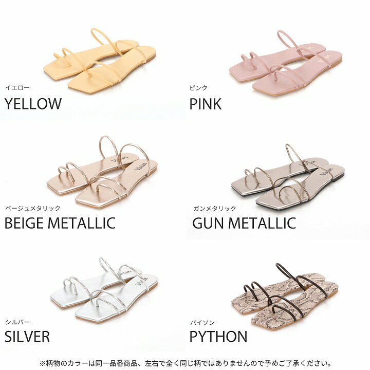 素 材 合成皮革 型押しPU素材×合成皮革(PY) メタリックPU素材(BGM、SV) メタリックPU×クリアPVC素材(GM) カラー BL(ブラック) IV(アイボリー) MO(モカ) WH(ホワイト) CM(キャメル) GR(グリーン) PK(ピンク) YE(イエロー) PY(パイソン) GM(ガンメタリック) BGM(ベージュメタリック) SV(シルバー) 生産国 中国 FITTING COMMENT 着用サイズ M 着用フットウェア 素足 ワイズ ぴったり 着用感 ぴったり コメント トレンドのスクエアトゥのサンダル!細めのストラップが華奢な足元に♪