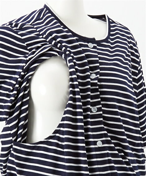 【産前・産後 授乳服】mutti ei 前開きボーダー半袖パジャマ ニッセン nissen グレー 紺 カラー グレー/紺 サイズ マタニティM/マタニティL 備考 単位:cm※サイズの誤差は多少発生します。