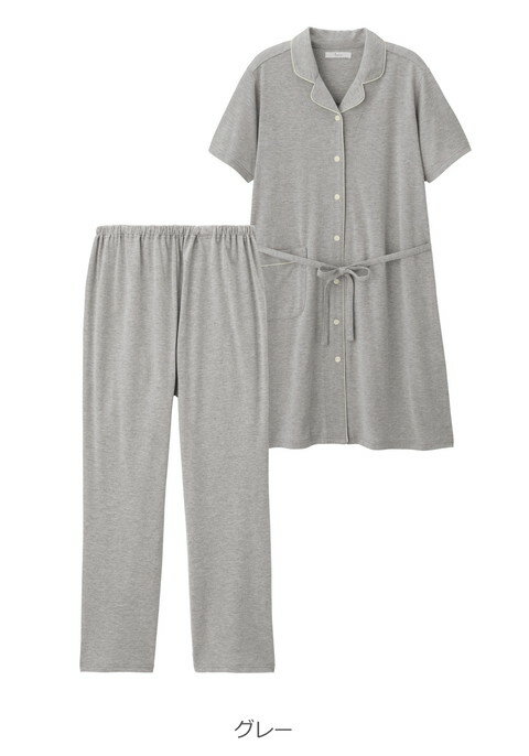 サイズ名腹囲肩幅袖口幅着丈パンツ総丈股下わたり幅裾幅 M〜L(トップス)11240179065 M〜L(パンツ)11099673221●ポケット付き ●素材/ポリエステル65% 綿35% ●企画デザイン 日本/原産国 中国 メーカー希望小売価格はメーカーサイトに基づいて掲載しています(fairy)【授乳しやすい】無地半袖オープンカラーパジャマウエストリボンでアレンジできる、定番人気のシンプルパジャマパイピングがアクセントになった、シンプルなオープンカラーシャツパジャマです。