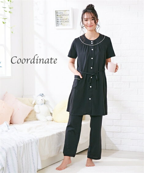 入院時に活躍する前開きで、パンツなしでも着用できる長め丈のパジャマです。