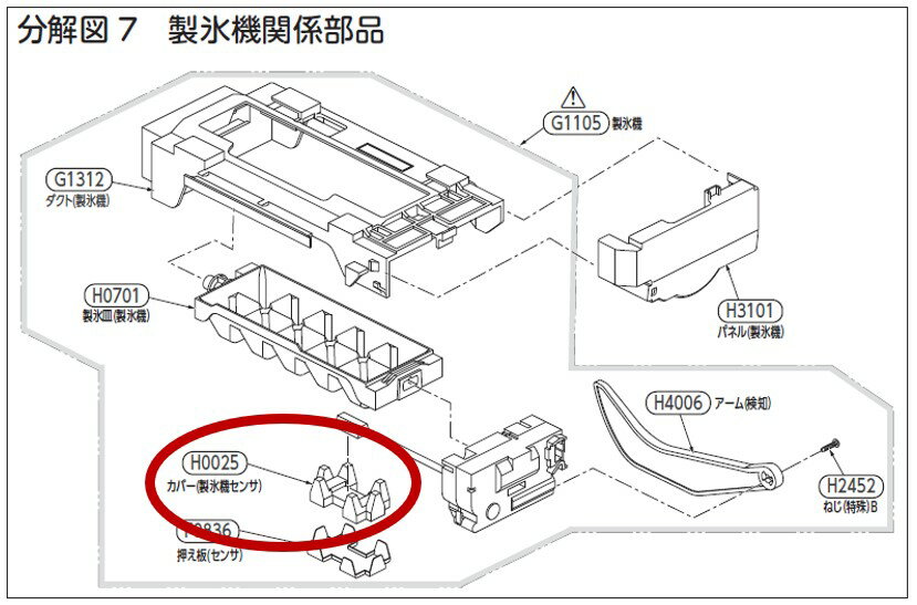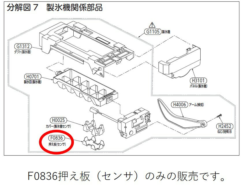 【定形外郵便対応】TOSHIBA(東芝) 冷蔵庫 製氷機関係 カバー(セイヒヨウキセンサ) 44067475 交換部品 返品不可